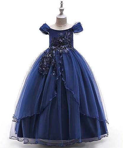 Amazon Com Solid Long Dress For Princess Girls Kids Winter Party Lace Gown Teen Girls Flower Embroidery Wedding Dresses Age 6 14yrs Blue 14 Clothing