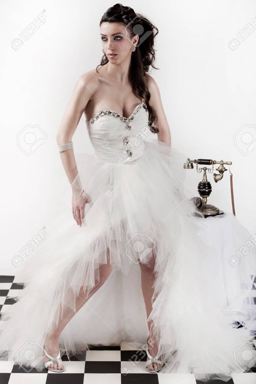 Beautiful Brunette Model Wearing Traditional Wedding Dress Stock Photo Picture And Royalty Free Image Image 7420914