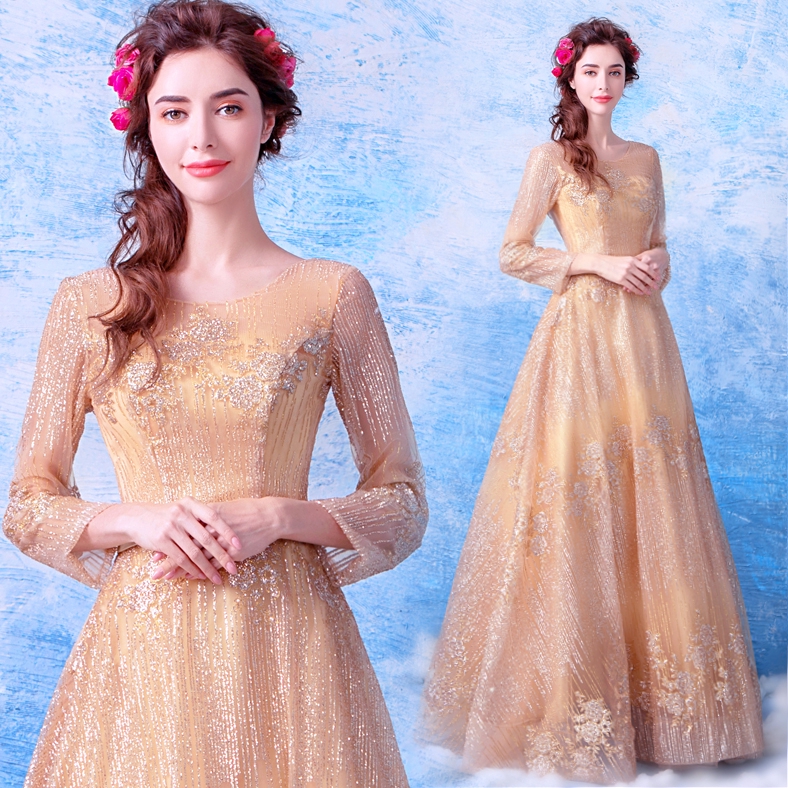 Heavy Gold Gilt Long Sleeve Golden Wedding Dinner Annual Performance Dress For Women Girl Sister Hijab Gown Dress Shopee Malaysia