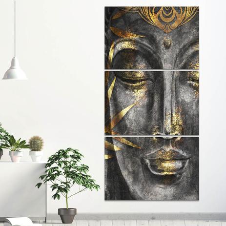 Quadro Decorativo 3 Telas Budismo Vertical Buda Dourado 001 - IQuadros